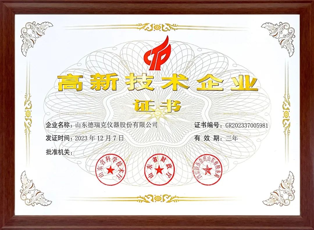 喜報頻傳|熱烈祝賀德瑞克儀器再獲“高新技術企業”證書
