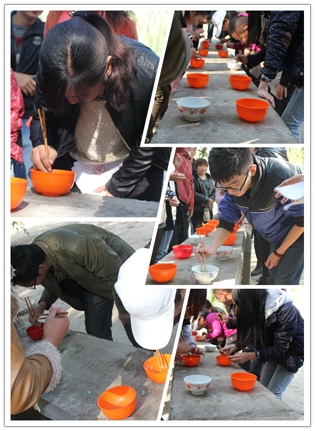 本次活動主要目的之一就是團隊協作,所以“玩游戲贏食材,美食廚藝大比拼”特別應景兒。選號、分組、游戲規則說明,各小組推薦參賽選手,挽袖子,上場,預備,開始……..好一個漂亮流暢的進程動作,“碗中運珠”的游戲一開始就吸引了現場眾多人的圍觀,歡笑聲,喝彩聲響成一片,參賽選手個個都不敢懈怠,雙目圓睜,可是小小玻璃珠子就是調皮,它們不是不上筷子,就是跳到碗外邊去了,甚至進了碗又神奇般地再次跳了出來。感嘆聲、歡笑聲頓時響成一片?!安恍?,有人作弊,這顆珠子不能算”。評委桂娟的眼睛何其明亮,現場一次沸騰起來,歡樂也不能破壞游戲規則,經過緊張激烈的角逐,第一名為:第六組,成績為26顆;第二名為:第二組,成績為16顆;第三名為:第三組,成績為12顆;第四名為: 第五組,成績為11顆;第五名為:第四組,成績為10顆;第六名為:第一組 ,成績為6 顆。