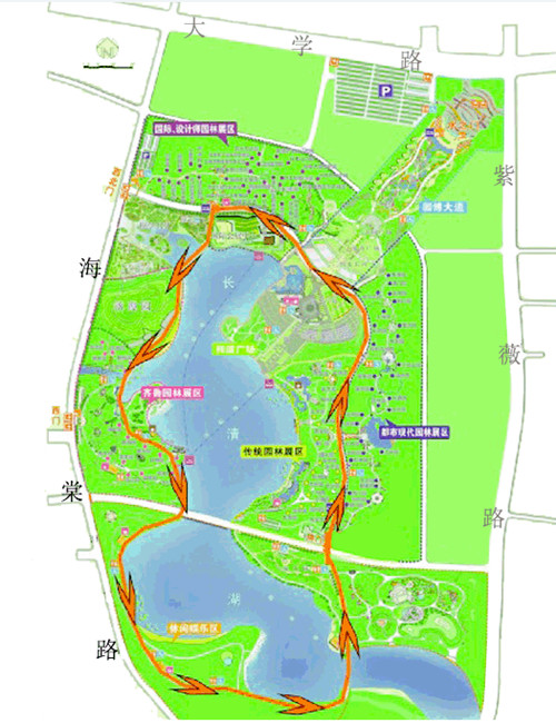 本次大賽舉辦地濟南國際園博園是目前國內陸地面積最大的園博園。園內展園總數超過一百個,包括17個省內城市、45個其他城市、我國港澳臺地區以及21個國外城市的主題園區。大賽分為專業組和業余組,專業組男、女各取前十名進行獎勵,業余組男、女各取前20名進行獎勵。參賽者們將在園博園環繞長清湖奔跑,專業組15公里,業余組7.5公里。