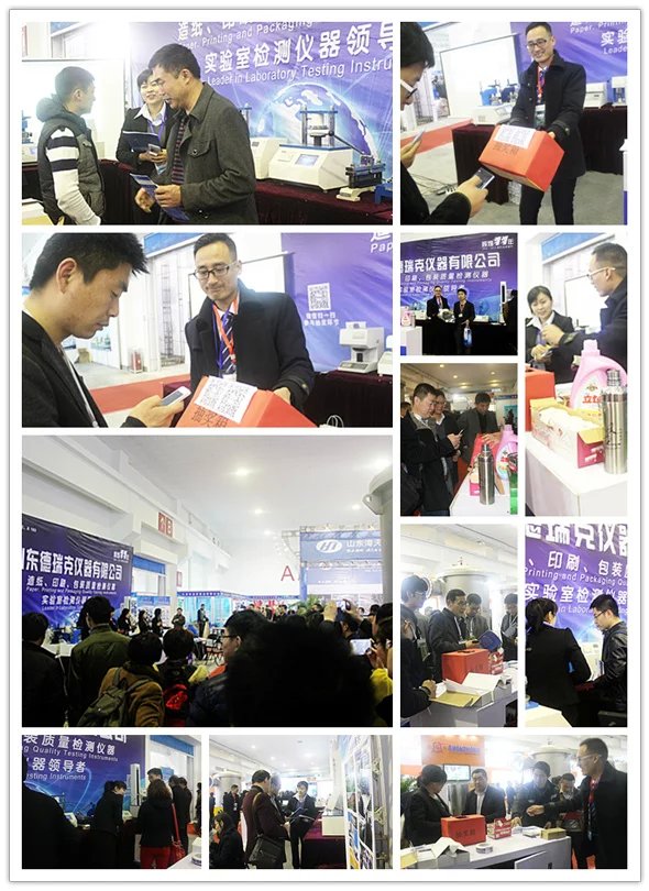 山東(國際)制漿造紙技術及裝備展覽會已成功舉辦十年,展會展出面積12000平方米,參展商約400余家,專業觀眾達15000余人,山東德瑞克攜2015新上市升級版產品亮相本次展會,其中DRK101A拉力試驗機采用進口直流伺服電機和滾珠絲桿構造性能更穩定, 中英文自由切換配合智能化 觸摸屏操作更便捷,且實時顯示曲線和數據。此外,平滑度儀,耐破度儀,耐折度儀,撕裂度儀,紙箱抗壓機等十余種新型檢測儀器也是山東德瑞克本次展會展出的得意之作,美觀,穩定,智能化,適中的價格,深得與會客戶的一致認可與好評。