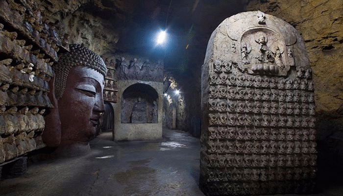 千佛山古稱歷山,因為古史稱舜在歷山耕田的緣故,又曾名舜山和舜耕山。隋開皇年間,因佛教盛行,隨山勢雕刻了數(shù)千佛像,故稱千佛山。